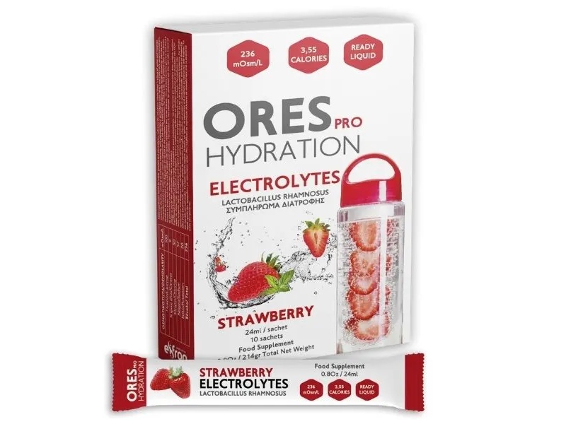 Το Eifron Ores Pro Hydration είναι ένα συμπλήρωμα διατροφής που περιέχει στη σύνθεσή του το προβιοτικό στέλεχος Lactobacillus rhamnosus GG, ηλεκτρολύτες (κιτρικό άλας, χλώριο, νάτριο, κάλιο), μαγνήσιο και ψευδάργυρο.