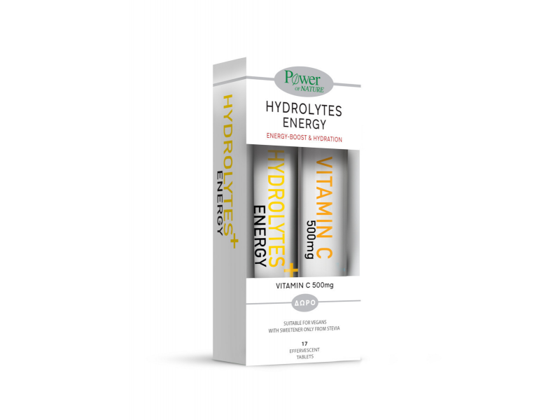 Power of Nature Hydrolytes Energy Συμπλήρωμα Ηλεκτρολυτών & Βιταμίνη C 500mg με Γεύση Φράουλα, 17+17 αναβράζοντα δισκία