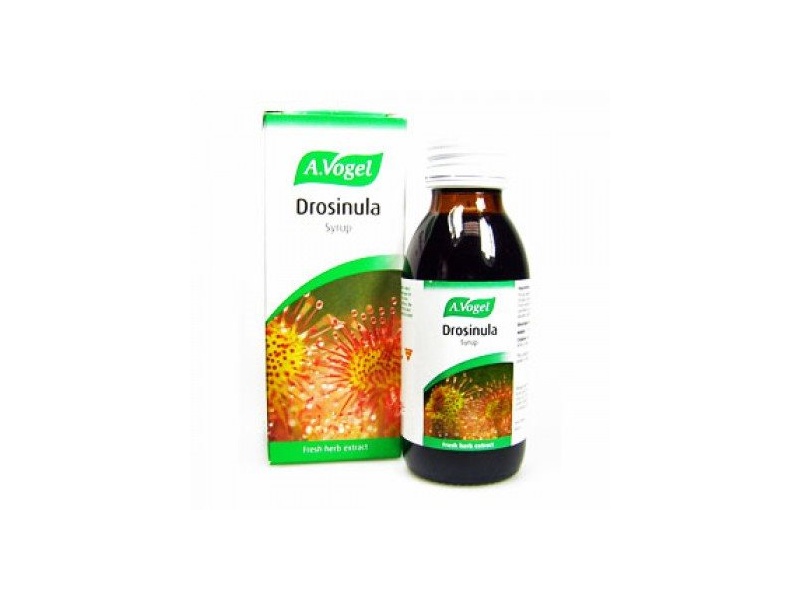 A.Vogel DROSINULA, Σιρόπι από φρέσκους βλαστούς. Καταπραϋντικό σιρόπι που επιδρά στο λαιμό, στους πνεύμονες και στους αναπνευστικούς αγωγούς, με ευεργετικά αποτελέσματα στη βρογχίτιδα, στον κοκκύτη και στον επίμονο βήχα, 100ml