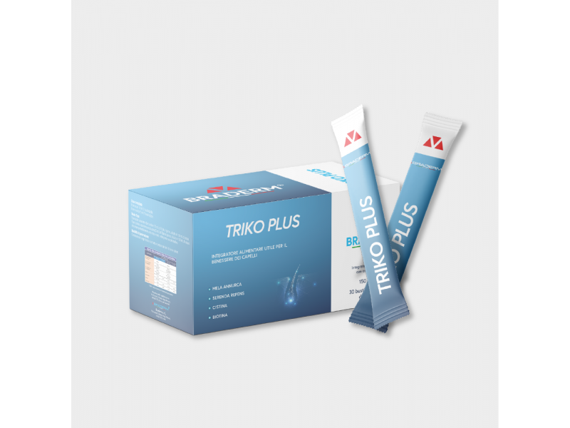 Το Braderm Triko Plus είναι ένα συμπλήρωμα διατροφής με βάση το serenoa repens, την κυστίνη, την αργινίνη, τη βιοτίνη, τον ψευδάργυρο, το σελήνιο, το φολικό οξύ, τη βιταμίνη B6 και τη βιταμίνη B12.