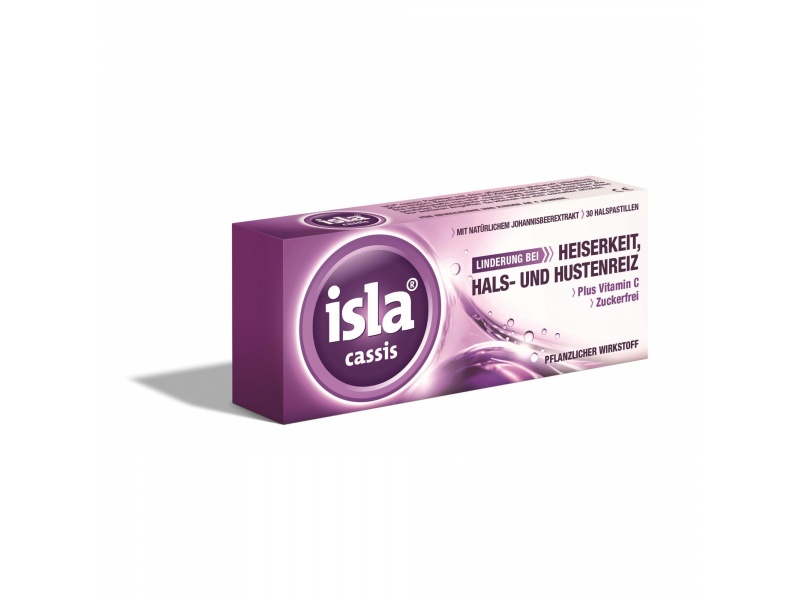 isla cassis Καραμέλες για τη βραχνάδα & τον ερεθισμένο λαιμό με βιταμίνη C χωρίς ζάχαρη 30 παστίλιες