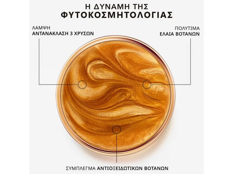 Αφήνει στο δέρμα ένα μεταξένιο πέπλο με ανταύγειες 3 χρυσών αποχρώσεων.