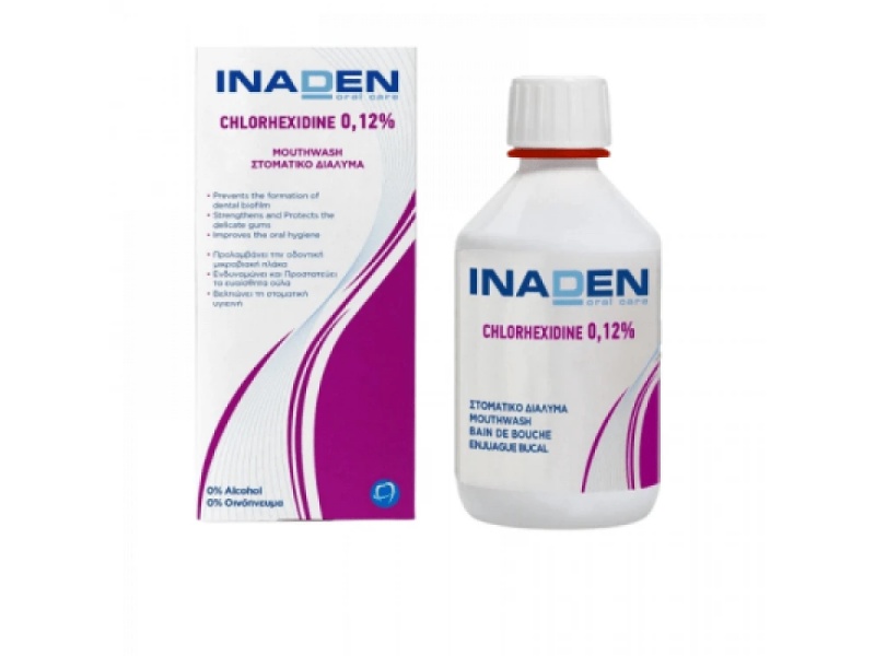 Το Inaden Chlorhexidine 0.12% είναι ένα στοματικό διάλυμα με χλωρεξιδίνη έναν γνωστό αντισηπτικό παράγοντα και σύμπλοκο o-Cymen-5-ol είναι σχεδιασμένο για να συμπληρώνει τη στοματική υγιεινή κατά τη διάρκεια οδοντιατικών επεμβάσεων.