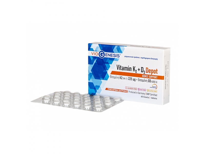 Viogenesis Vitamin K2+D3 Depot Συμπλήρωμα Διατροφής Βραδείας Αποδέσμευσης με Βιταμίνη K & Βιταμίνη D, 60 δισκία