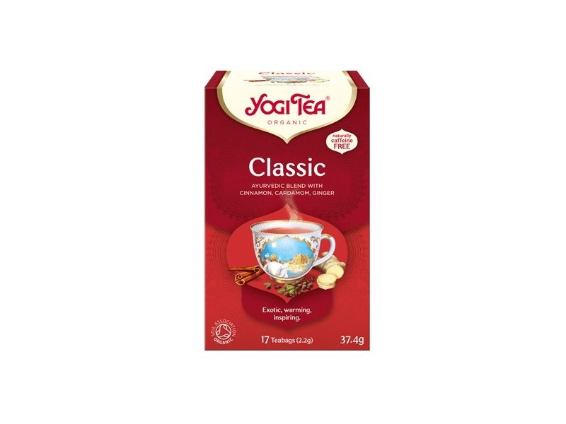 Το Yogi Organic Tea Classic Chai είναι ένα ρόφημα μπαχαρικών με κανέλα, κάρδαμο, γαρύφαλλο, πιπέρι και τζίντζερ. Είναι πικάντικο, γλυκό και τονωτικό.